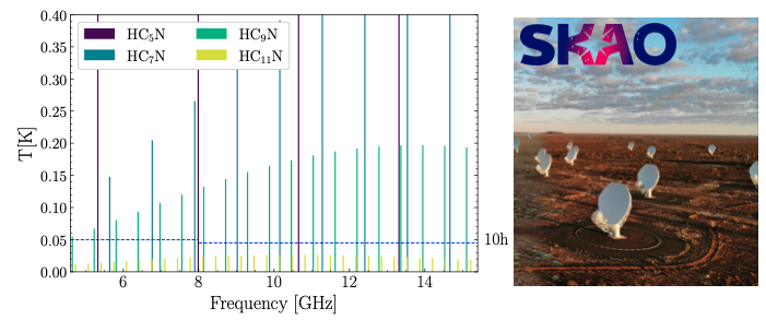 During the thesis, the student will investigate the observability of complex species in typical star-forming regions using the SKA-Mid array. Based on previous observations, the student will assume typical gas conditions and use radiative transfer predictions to build synthetic spectra and maps for various molecular species. The student will explore different physical conditions, ranging from the prestellar core stage to the protostellar envelope and protoplanetary disks. Observational parameters will be optimized using the official SKAO sensitivity calculator. Subsequently, simulated observations will be performed using the Python package containing the SKAO Science Operations Array Configuration and templates. The final goal is to identify the most promising science cases and optimal observation strategies for the telescope's first light and its final configuration, thereby laying the groundwork for the SKAO early science. The student will also participate to the activities of the iSEEDs (AstrochemIcal Study of Early Embedded Disks) project (www.iseeds.inaf.it/).